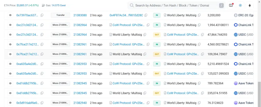 Donald Trump's World Liberty Financial (WLFI) has gone on a crypto spending spree, acquiring millions of dollars worth of Ethereum (ETH), Chainlink (LINK), and Aave (AAVE).