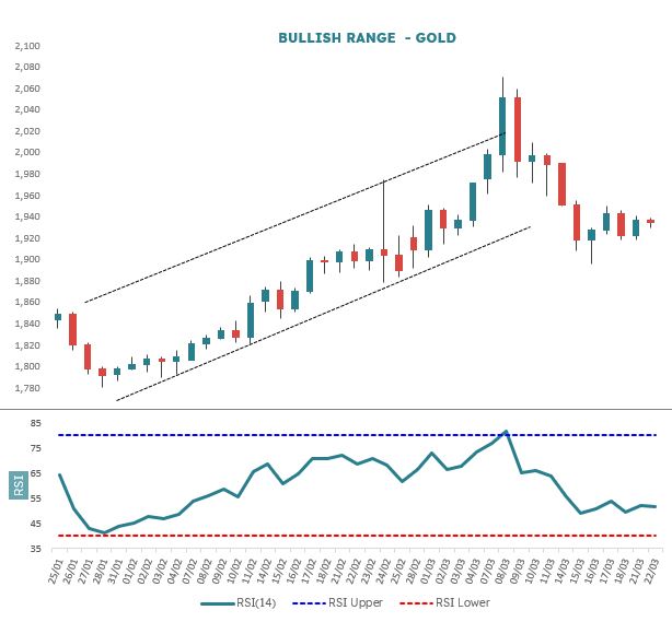 We have seen that fixed 70/30 overbought and oversold levels in RSI, regardless of the underlying market condition imperfectly call reversals. However, that is not to say that levels cannot usefully be applied. What we tend to see is that in an uptrend, RSI stays within the 40 and 80 range and in a downtrend it is in the 20 to 60 range.