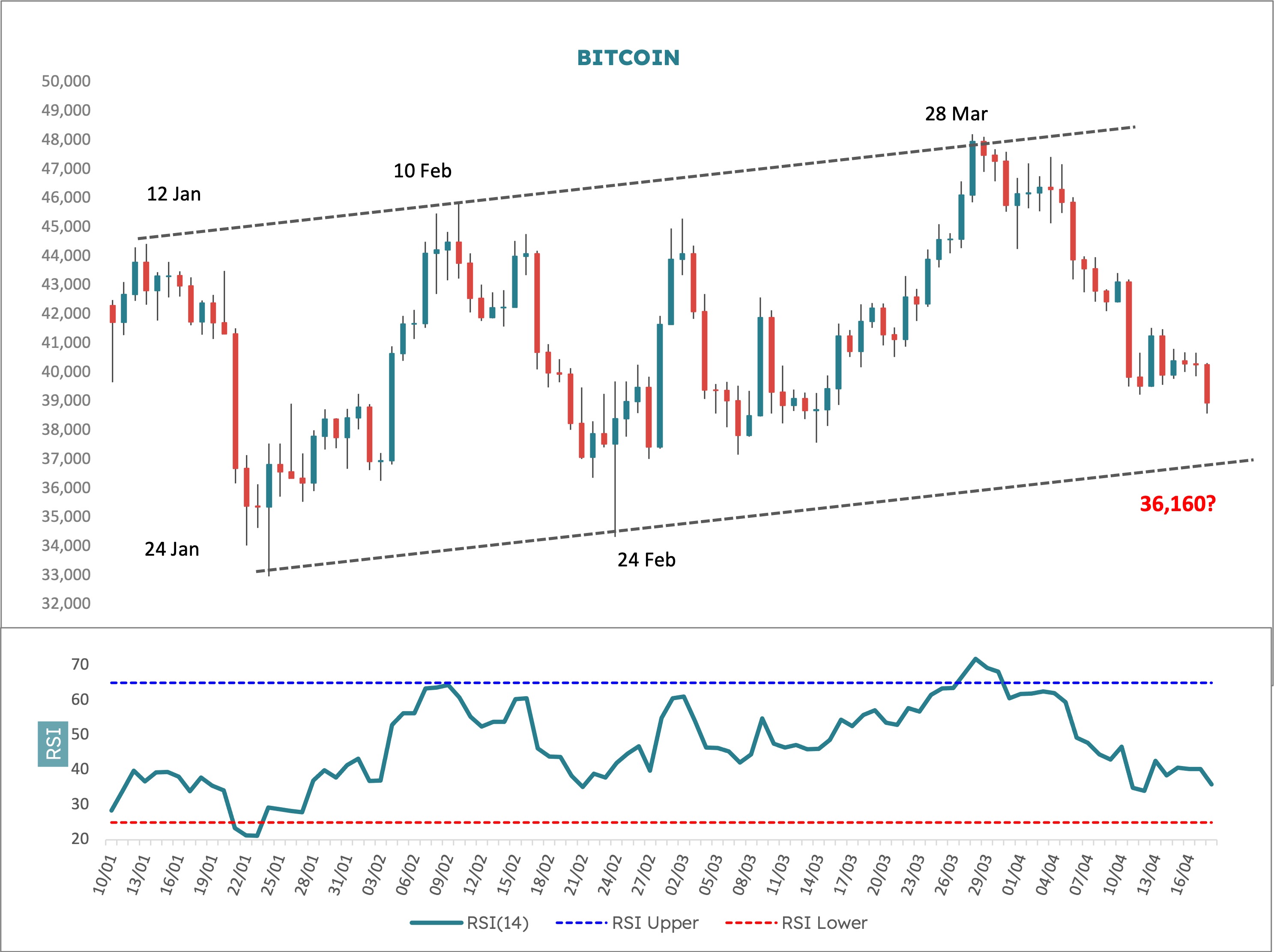 - While trading sideways over the weekend, Bitcoin is expected to fall to US$37,000 in the next week or so.