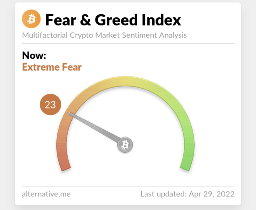 The current score of 23 (Extreme Fear) remains unchanged from Monday’s score. More volatility should be expected as risk appetites remain sapped.
