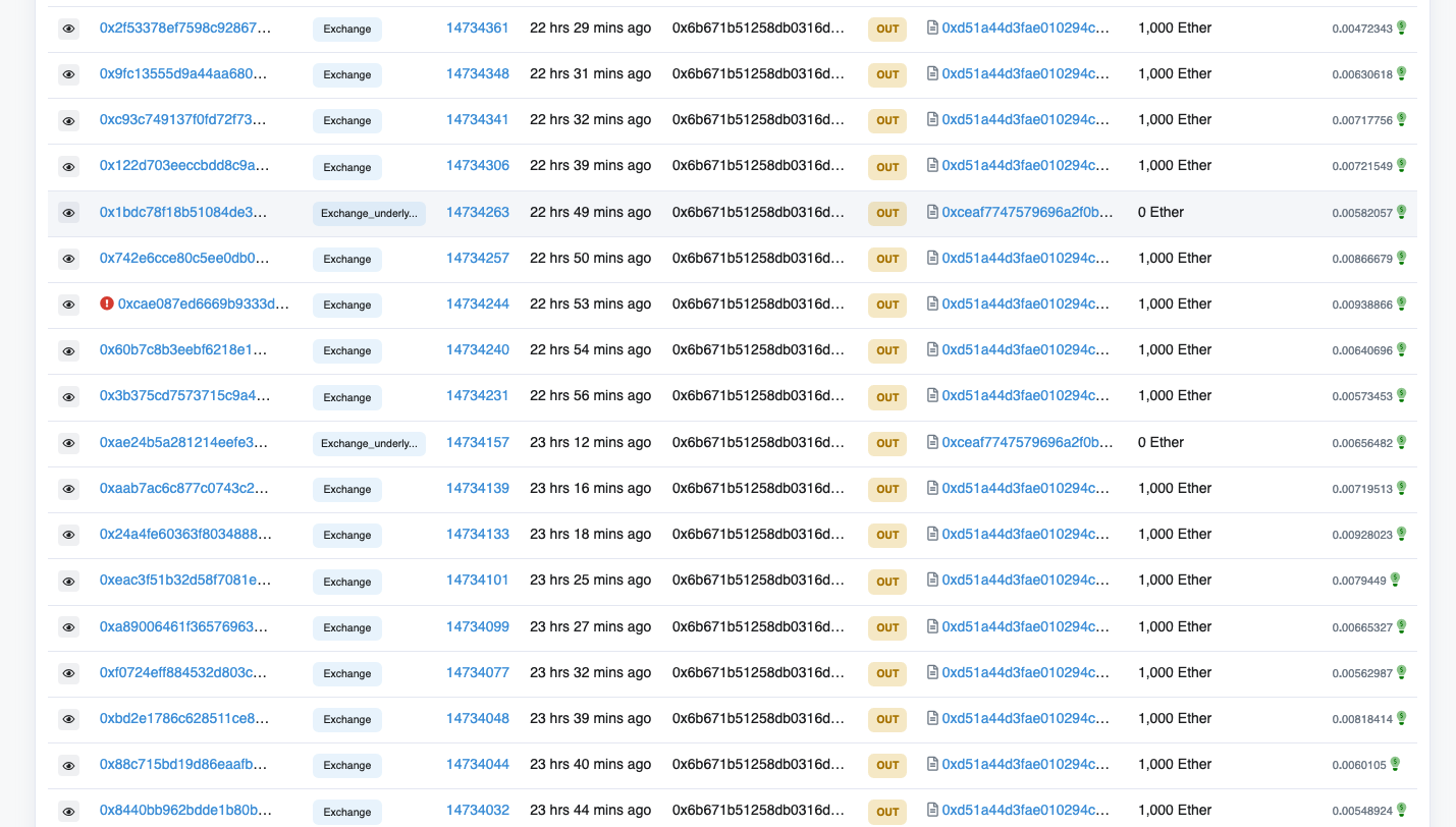 One wallet began swapping 1,000 ETH to USDT to UST every few minutes. The address has swapped over 60,000 ETH since, accumulating over US$100 million in UST.