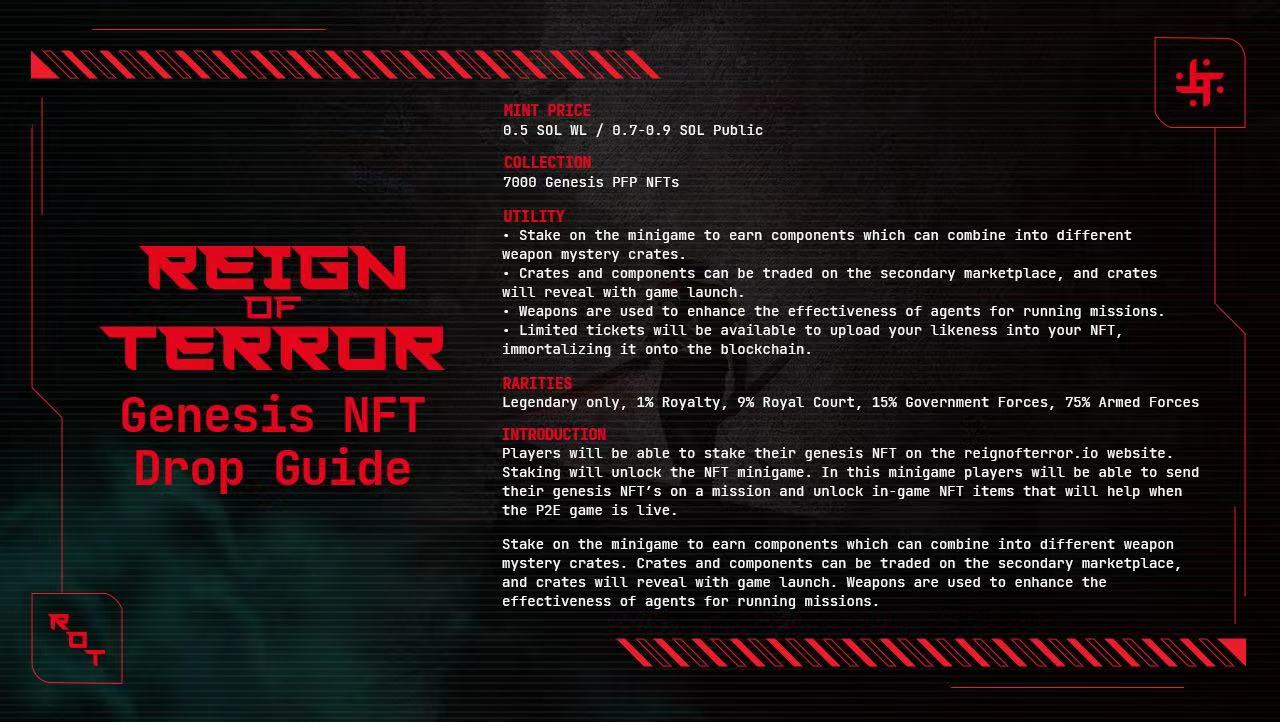 Reign of Terror is a cyberpunk MMO that will showcase Red Door Digital’s credentials as a AAA-quality game developer. NFT minting will be being with PFPs folllowed by later rounds that include land sales and character drops.
