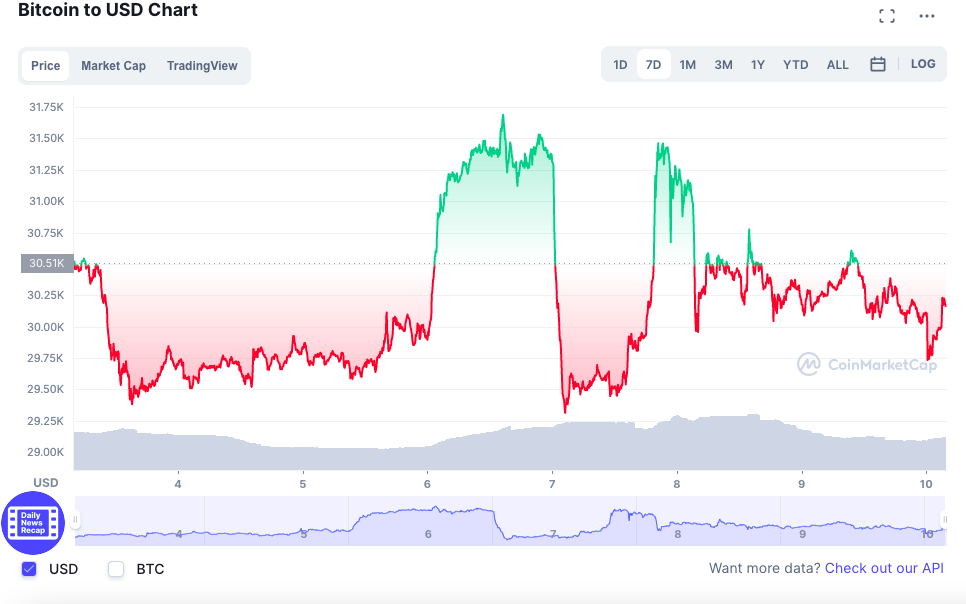 At the time of writing, Bitcoin (BTC) is trading at US$30,205.34 (-0.12%) while Ethereum (ETH) is trading at (+0.03%). Major altcoins such as Solana (SOL) and Avalanche (AVAX) have been trading in green over the past 24 hours.