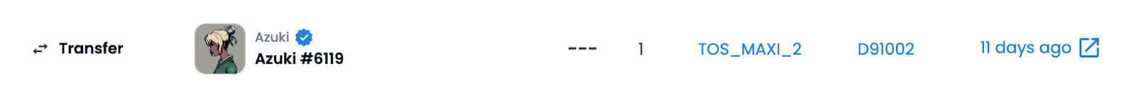 Another suspicious wallet with similar behaviour was awarded an Azuki, PXN and WoWG.
