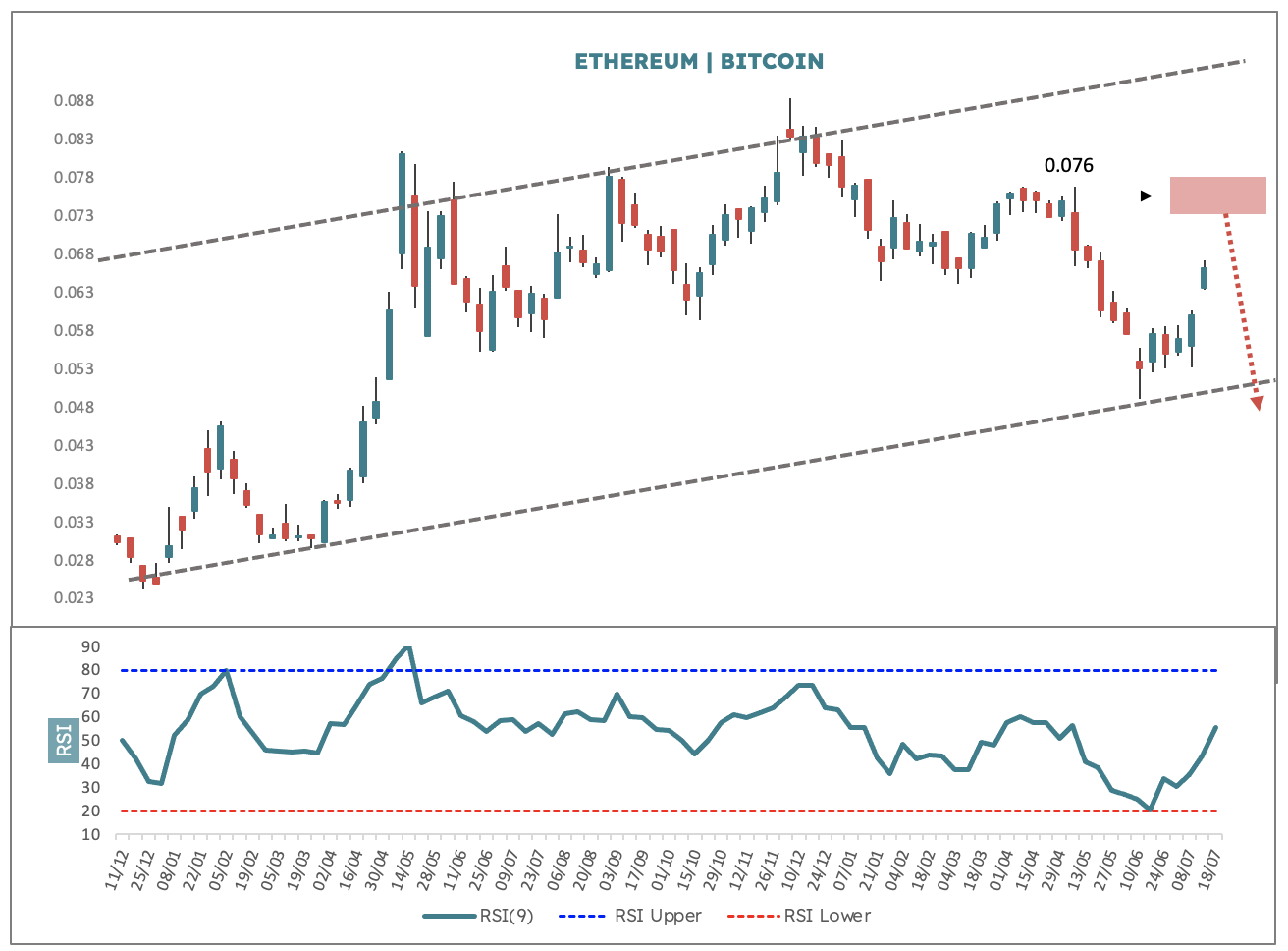 A general uplift in risk sentiment has blown through the market with main equity index futures up on average 0.87% since Friday’s close (S&P500 +0.54%, Nasdaq +0.91%, European Stoxx +0.66%, Nikkei +1.38%). This apparent risk appetite has touched crypto as well with Bitcoin +4% and Ethereum up a significant 14.1%.. The spread between XET and XBT is what we will focus on today.