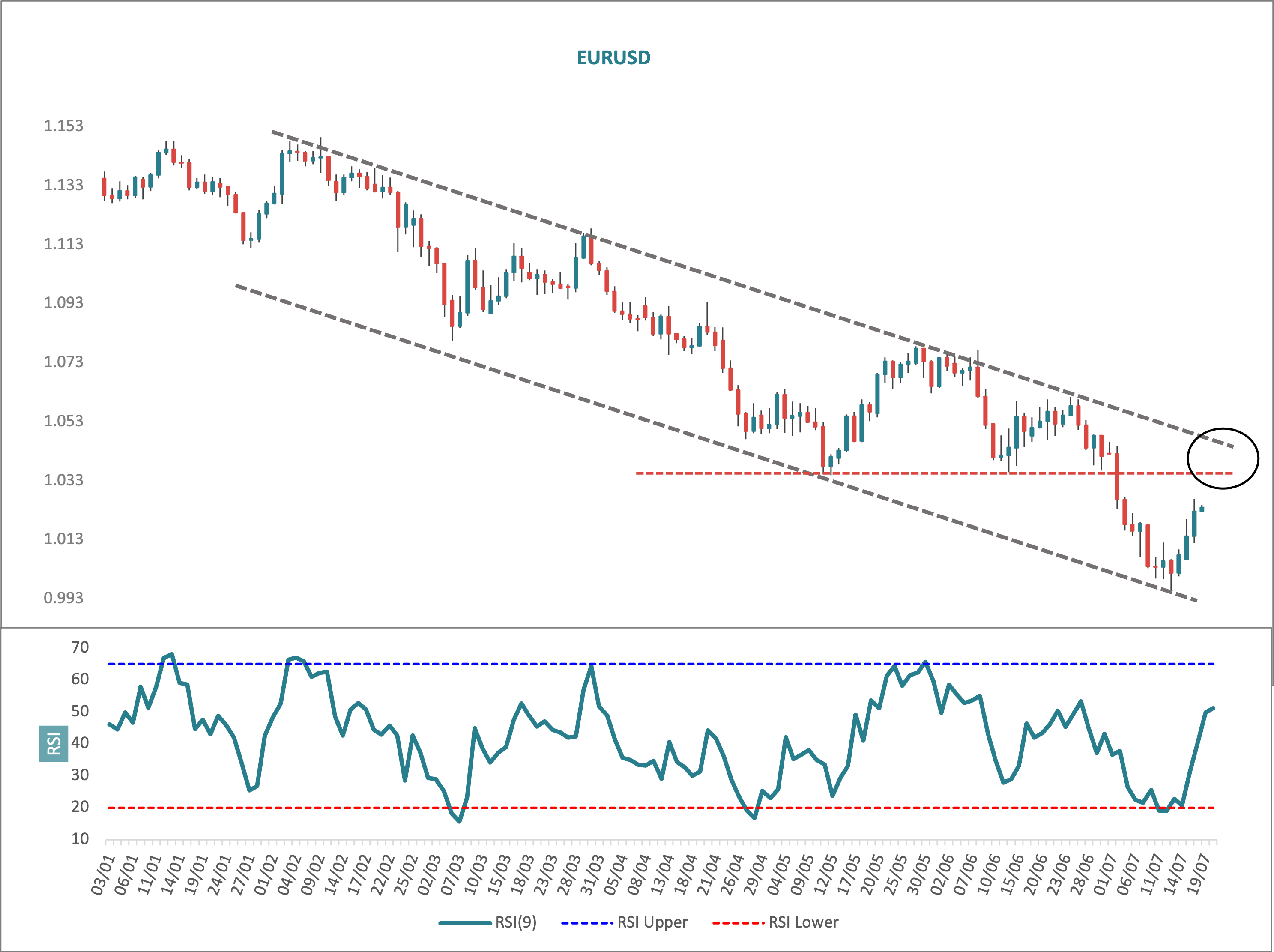 Looking at the daily data chart in EURUSD from start 2022, we can see price channeling down nicely, hitting parity at the bottom of the channel (just below actually) rebounding from natural support and then zooming upwards. However, momentum wise it came from nowhere (i.e. no slowdown before) and the intraday wave structure is not impulsive. So despite news of a wall of money hitting markets as sentiment became too bearish, this move and many others (especially Nasdaq which is a key lead indicator) still look corrective and therefore suspicious.