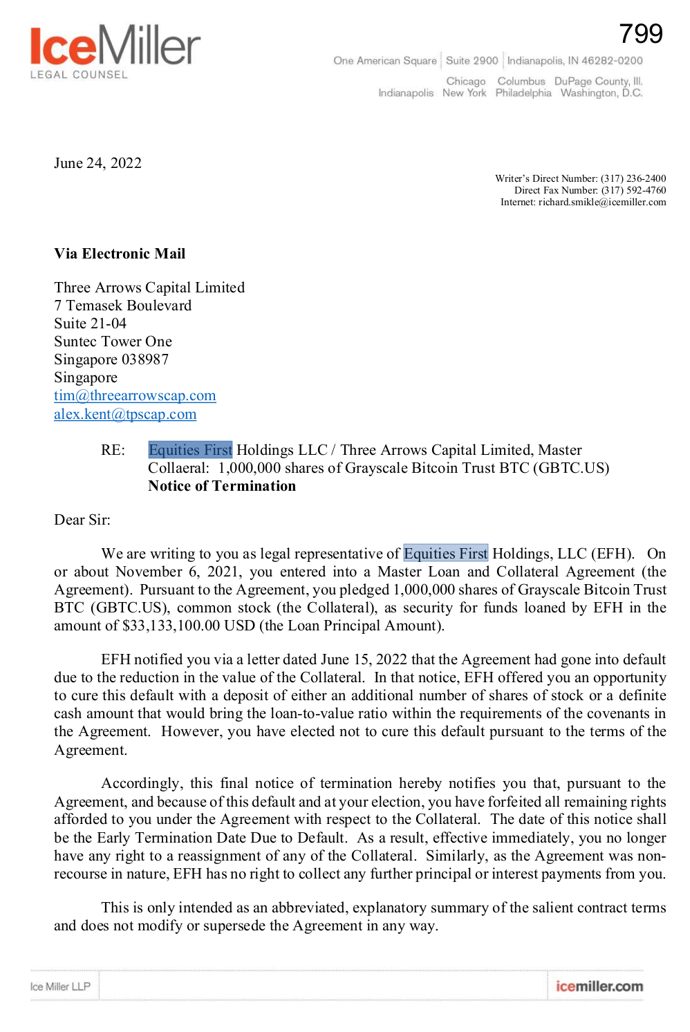 If Equities First valued the collateral properly (as GBTC shares), 3AC should have been put into default immediately following the UST incident!