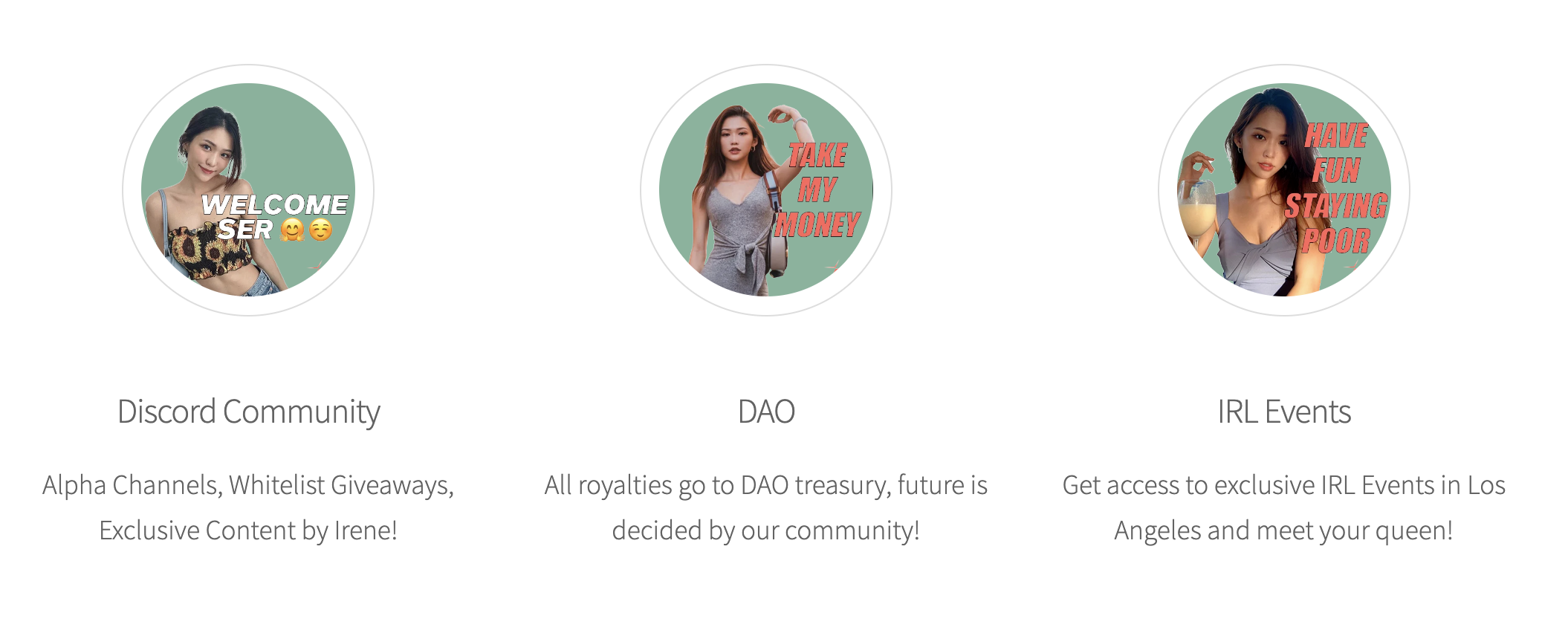 SoCol is a web3 creators’ platform backed by the likes of Animoca, DeFiance Capital and even 3AC (don’t worry, 3AC’s seed funding was through tokens). Irene DAO is parked under SoCol and is being used to demonstrate the power of creator platforms.