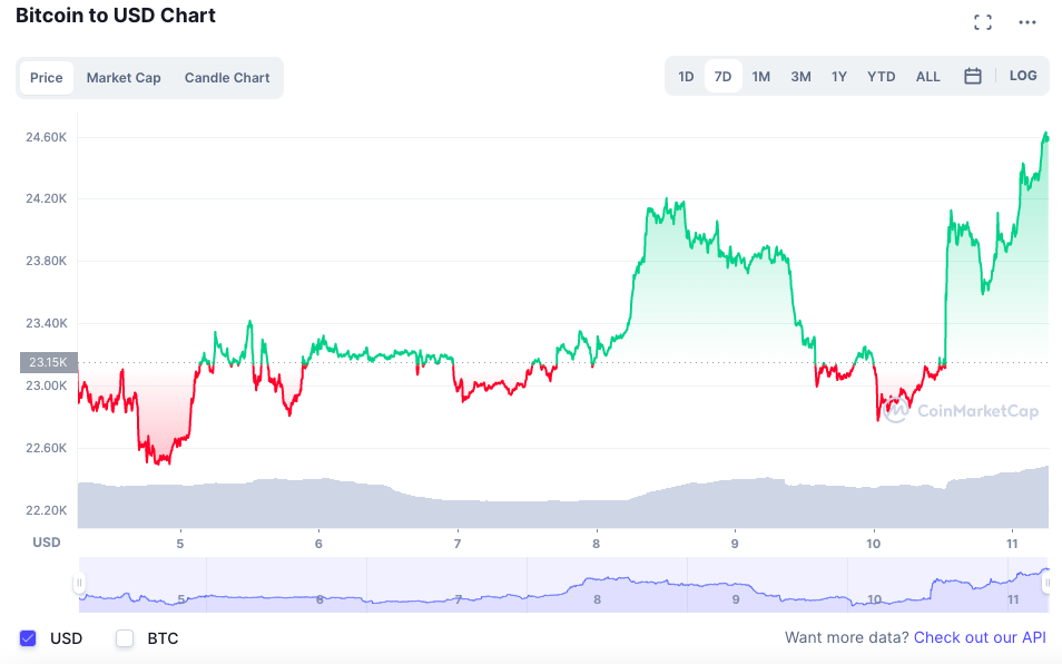 Bitcoin and other cryptocurrencies rallied after the release of US CPI (consumer price index) data on Wednesday, with the world’s largest cryptocurrency jumping by 2% within minutes after the report was released and breaching the US$24,000 threshold.
