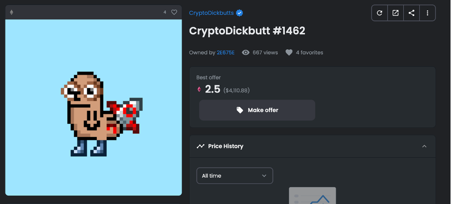 The acquisition of a CryptoDickButt is such a powerful statement – seemingly dissociating themselves away from the politically correct way of web2. It is beyond me to imagine a traditional company taking pride in owning such a jpeg.
