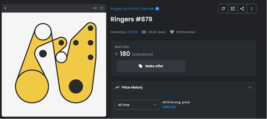While the price of Cherniak’s Ringers did appreciate with time (it’s floor price stood at 60 ETH as of time of writing), I feel that it is unlikely to appreciate to such a degree where this purchase becomes profitable – maybe we’ll have to wait a century.