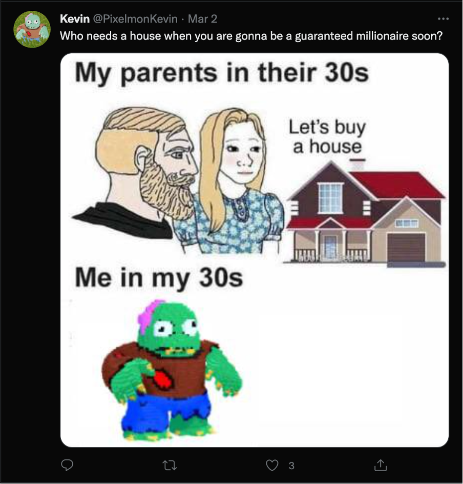 While it may seem like a waste of money at first, memes have not only survived but also thrived in our fast-paced consumption of digital media. From the rise of Instagram to meme coins (e.g. Dogecoin) to overnight mooning of meme NFTs (e.g. Kevin from Pixelmon), this internet sensation is truly unstoppable.