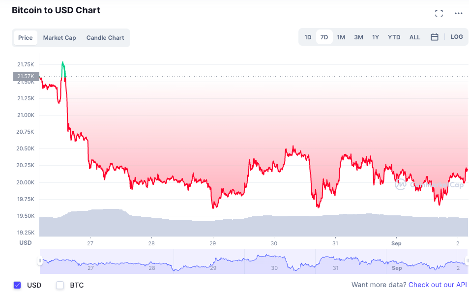Bitcoin and other cryptocurrencies traded sideways throughout the week, with the world’s largest cryptocurrency hovering slightly above US$20,000 for now.