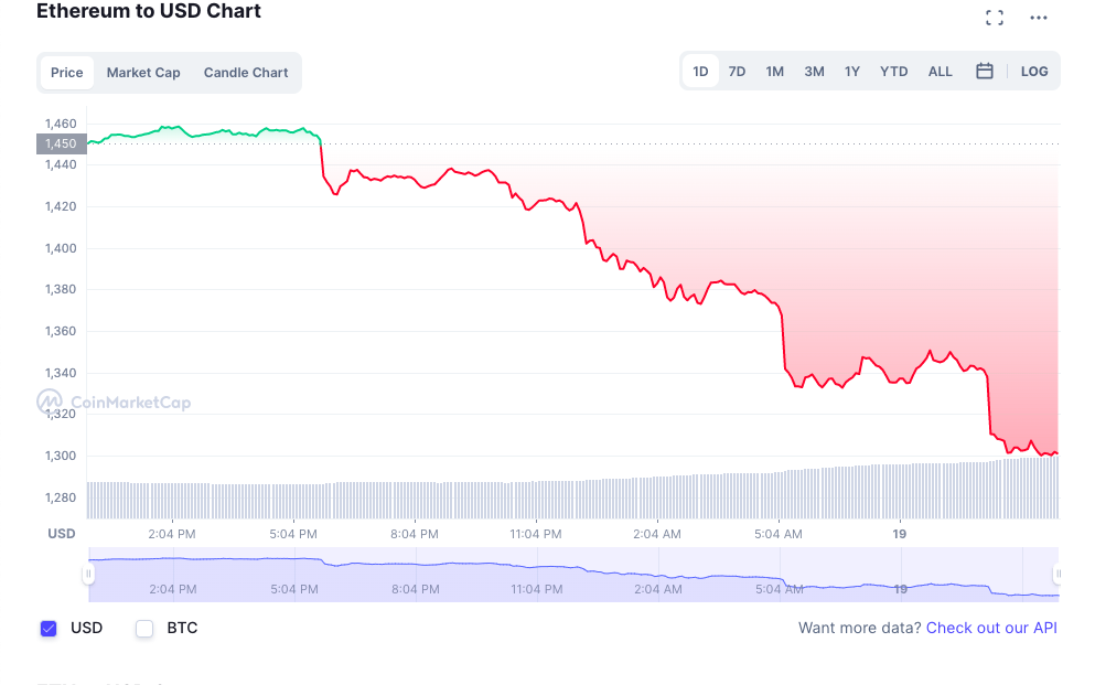 At the time of writing, Bitcoin (BTC) is trading at US$18,816.41 (-5.84%) while Ethereum (ETH) is trading at US$1,300.80 (-10.39%). Major altcoins such as Solana (SOL), Avalanche (AVAX), and Polkadot (DOT) have also been languishing in a sea of red.