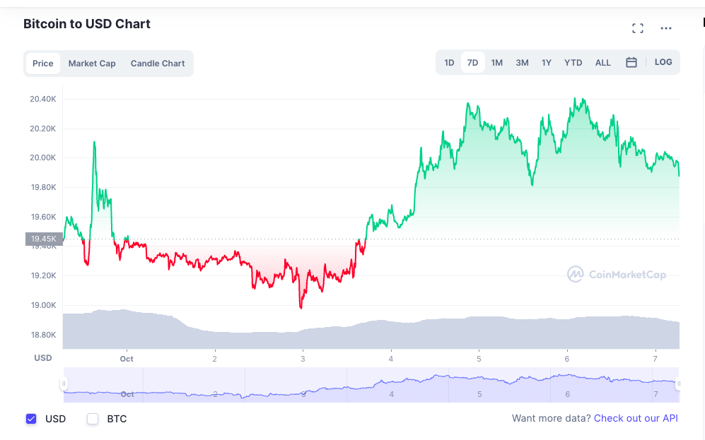 Bitcoin and other cryptocurrencies registered slight gains over the past week, with the world’s largest cryptocurrency briefly touching US$20,000 before paring gains.