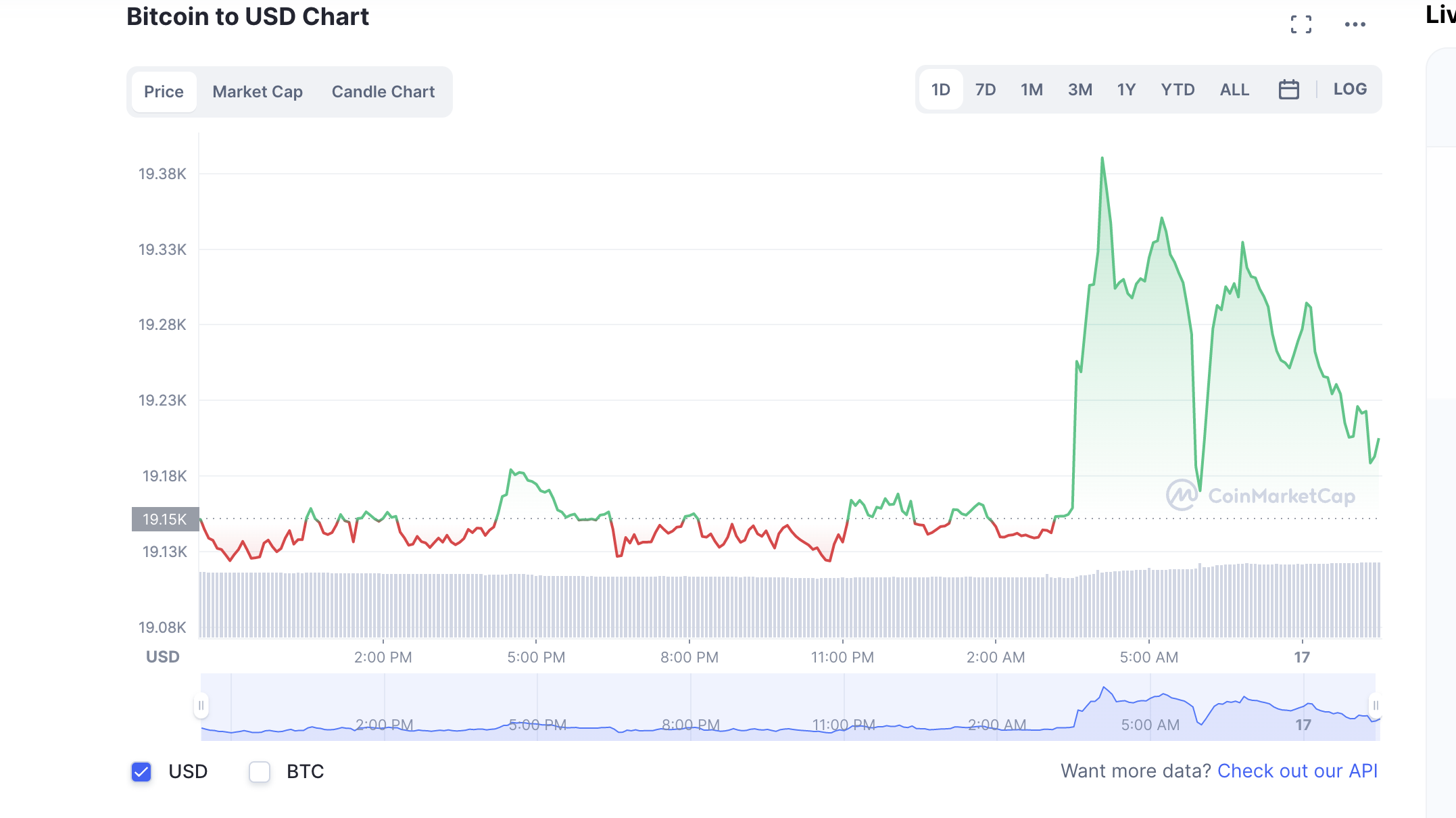 At the time of writing, Bitcoin (BTC) is trading at US$19,200 (+0.43%) while Ethereum (ETH) is trading at US$1,299.94 (+1.41%). Major altcoins such as Solana (SOL), Avalanche (AVAX), Polkadot (DOT) have also been trading in green within the same period.
