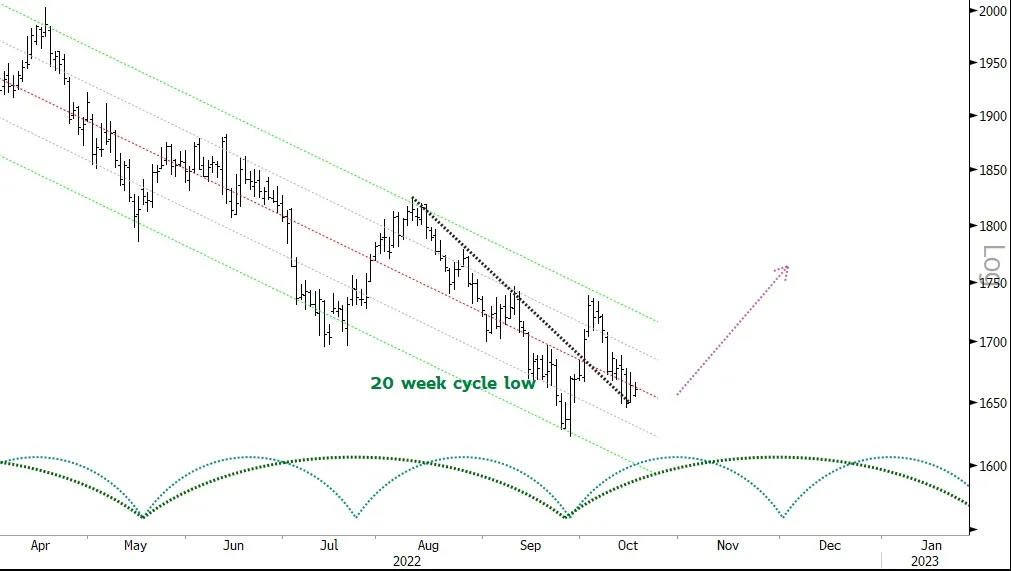 Switching over to crypto read across Gold today. The trough at the end of September was at least that of a 20-week cycle. This implies a meaningful upside, which should carry over to crypto.