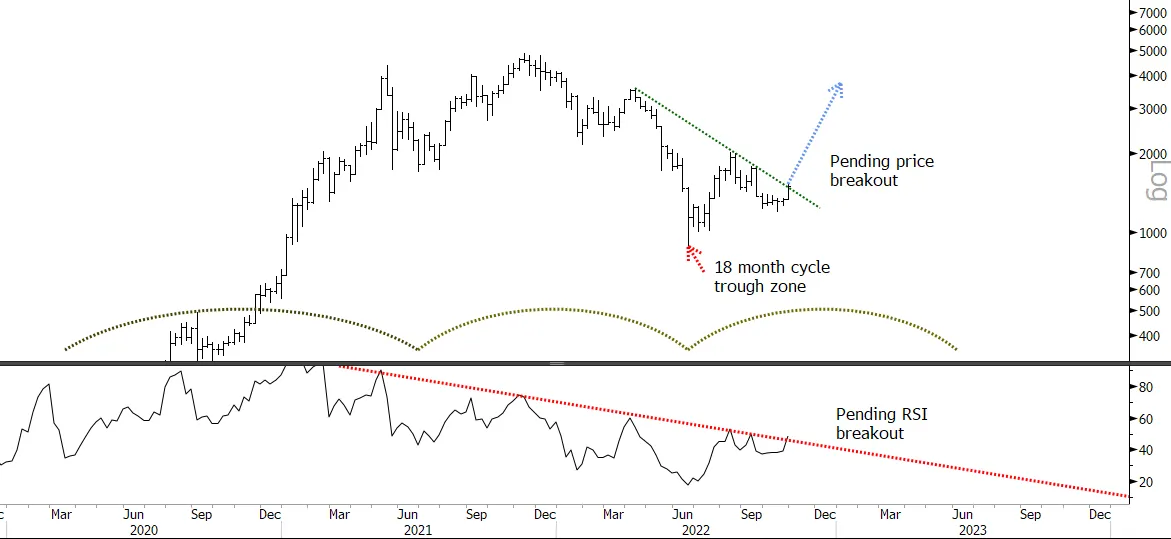 Right now it is feasible that Ethereum is breaking out after an 18-month cycle trough. This is a big cycle and if the analysis is correct then we are looking up to between US$3,000 and US$4,500 (by the end the year and by next March respectively).