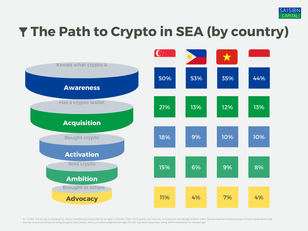However, Sirise also believes that crypto adoption remains “complex,” as according to a recent survey conducted by the Saison Capital team, 53% of the population in the Philippines are aware of what crypto is, but only 9% have purchased crypto to-date.