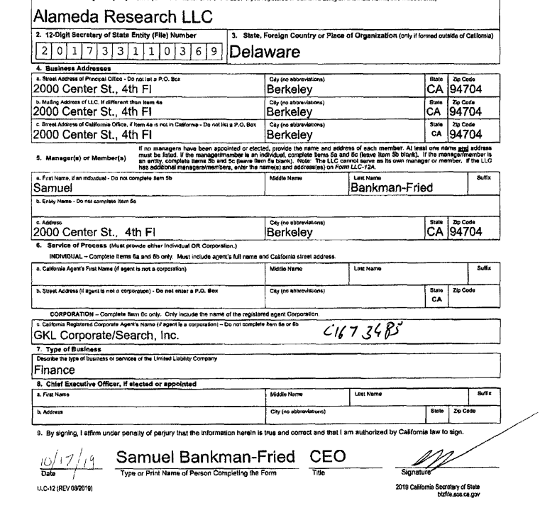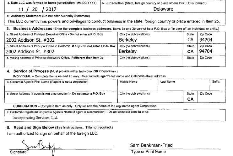 Alameda Research LLC – the Delaware entity and better known as the the hedge fund of FTX, which has just filed for Chapter 11 bankruptcy in the US – was originally incorporated in November 2017. We can see this from public filings: