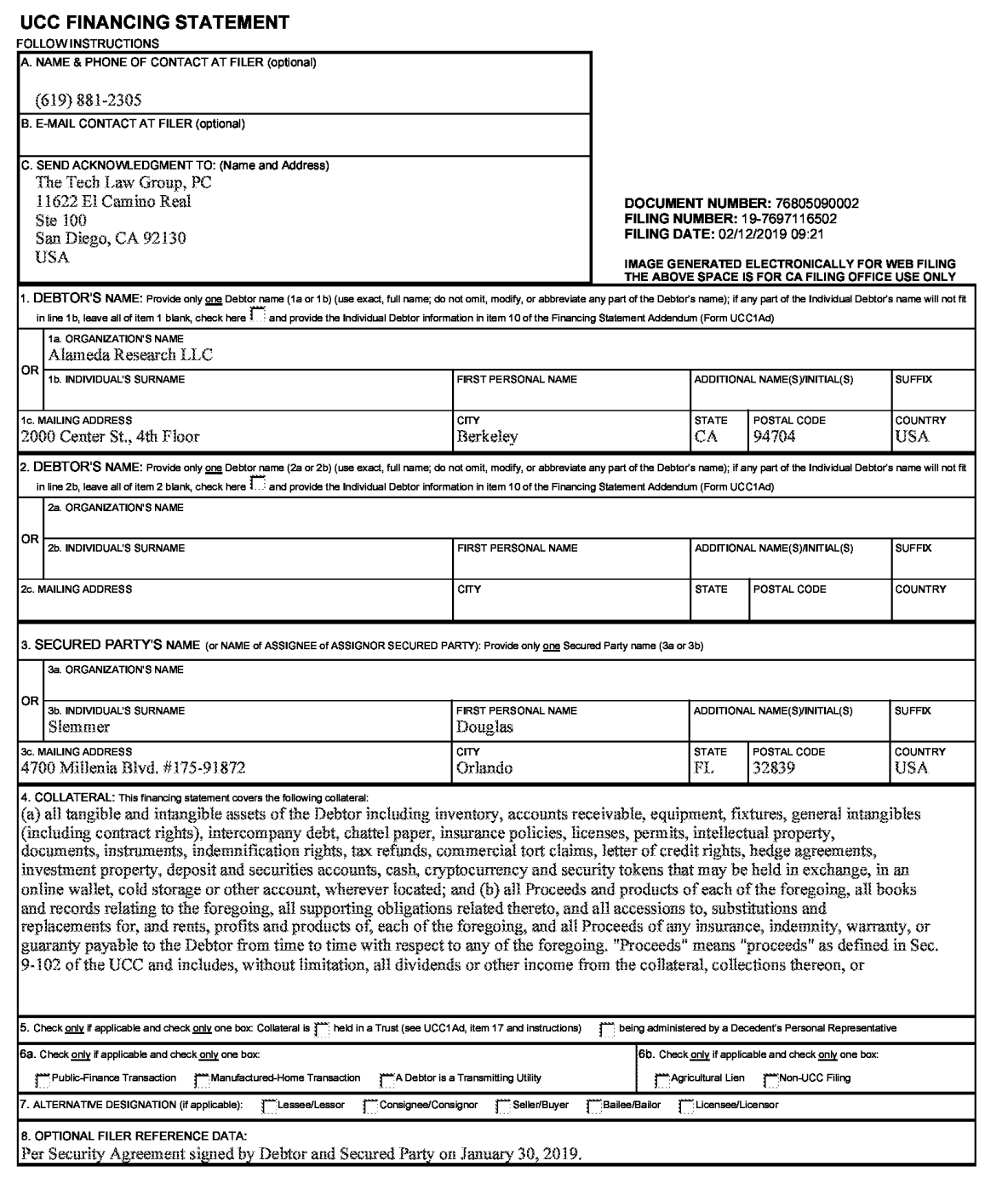 Note two things on that form: the date January 30, 2019 and the secured party’s name and address.