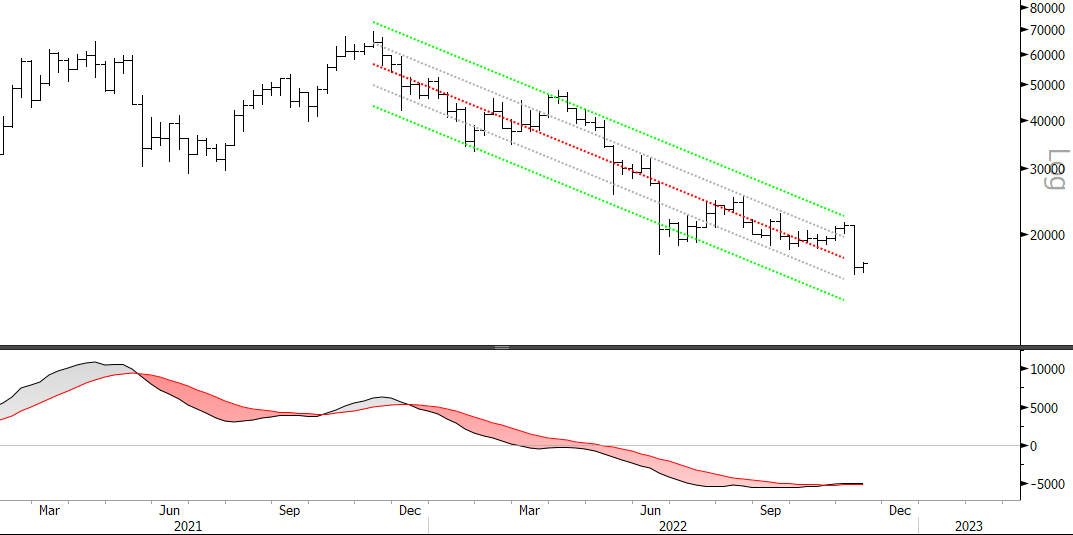 Technically Bitcoin is in a very long cycle trough zone right now the 18-month cycle. When this is confirmed it should lead to a monster rally. However, the wavelength of the cycle makes the actual trough due in February. There is so much event risk at the moment that it is burdening price to the downside and I am expecting the dollar to rally soon, which will put more pressure on Bitcoin.