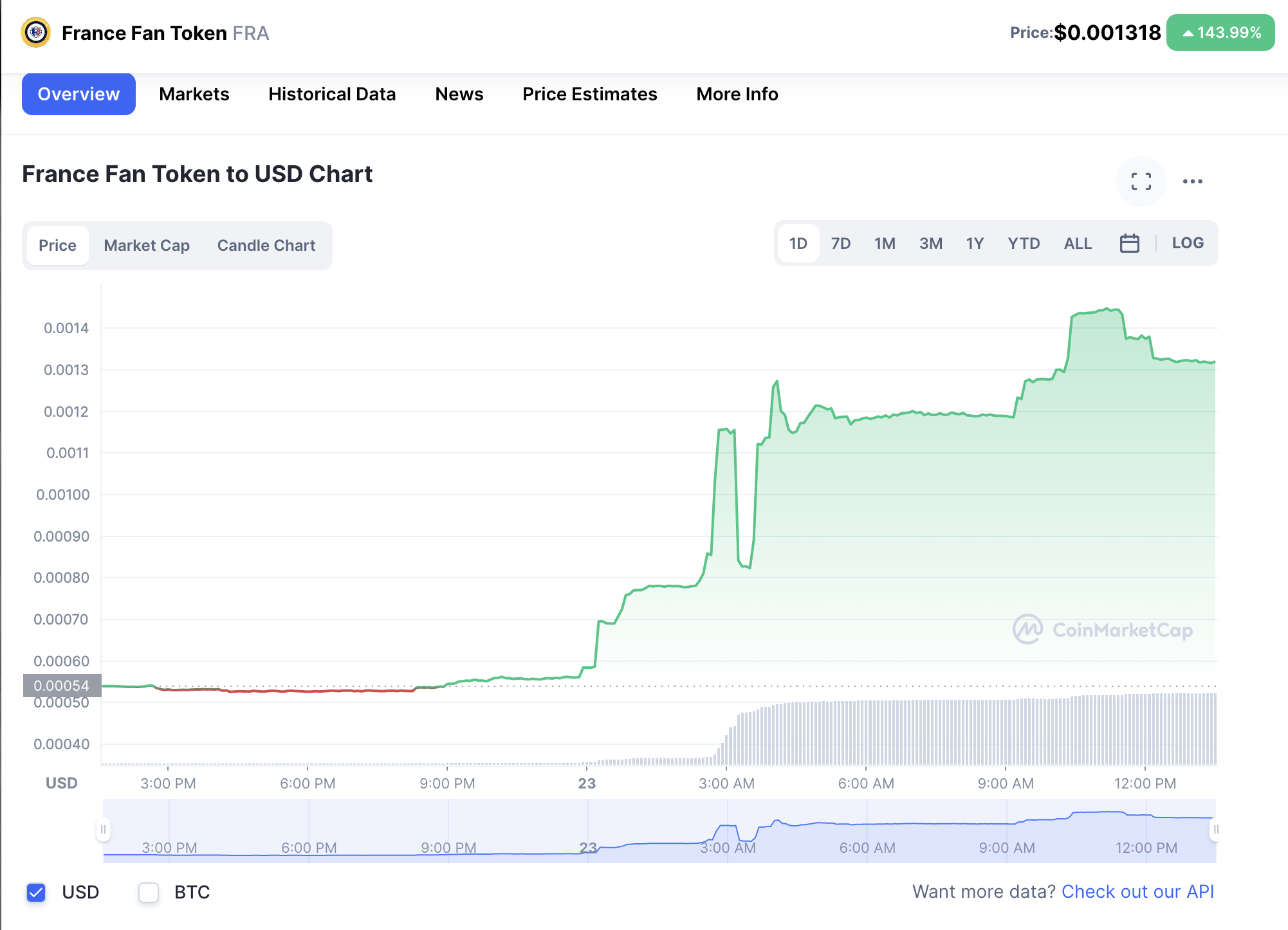 Meanwhile, France saw their fan token ($FRA) surge over 145% to US$0.001444 following their 4-1 win over Australia.