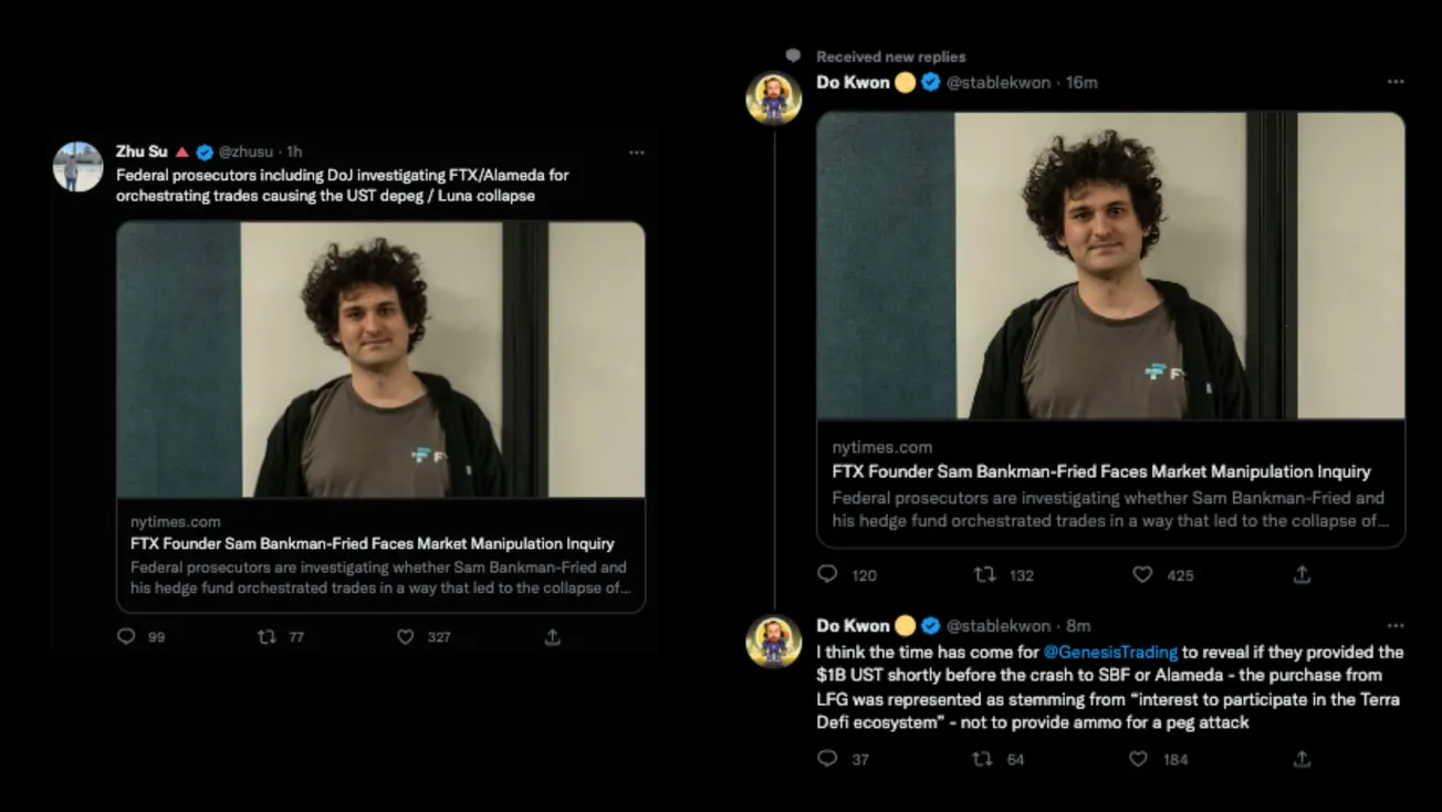 On Twitter, 3AC co-founder Su Zhu shared news about SBF’s latest investigation. “Federal prosecutors including DoJ investigating FTX/Alameda for orchestrating trades causing the UST depeg / Luna collapse,” he tweeted, sharing the New York Times article.