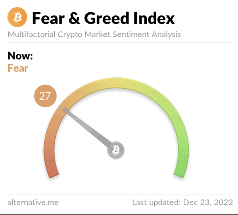 Risk appetites are sapped – the Crypto Fear and Greed Index currently stands at 27, indicating “ fear” – a sign that investors are on the edge. The index uses 5-6 measurements to assess the current sentiment of the market and then rates that level of emotion on a scale of 1-100 – 1 is extreme fear and 100 is extreme greed.