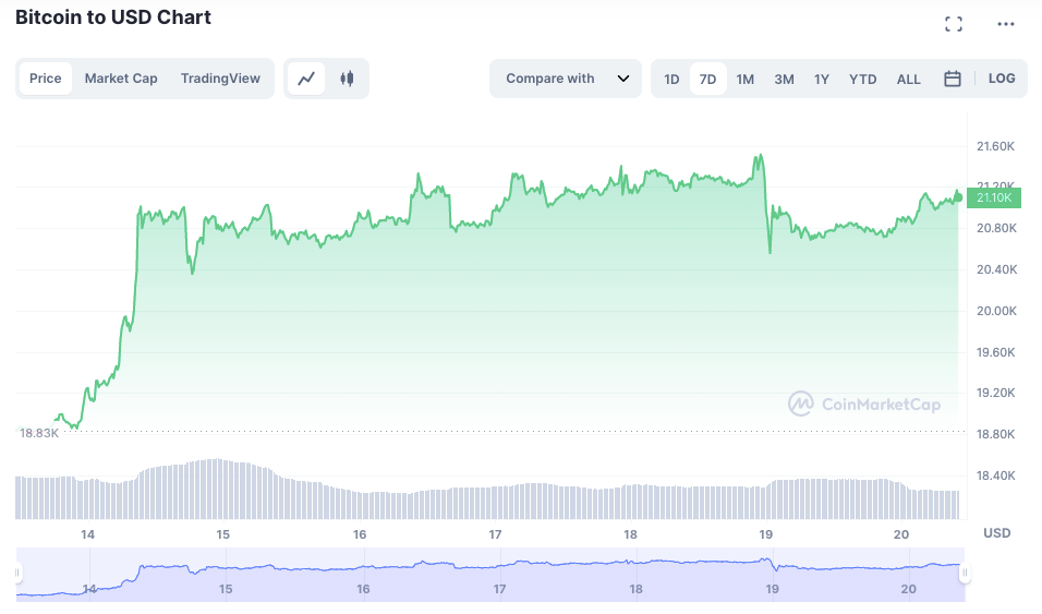 Bitcoin and other cryptocurrencies traded sideways throughout the week, with the world's largest cryptocurrency perched comfortably on the US$20,000 level for now.