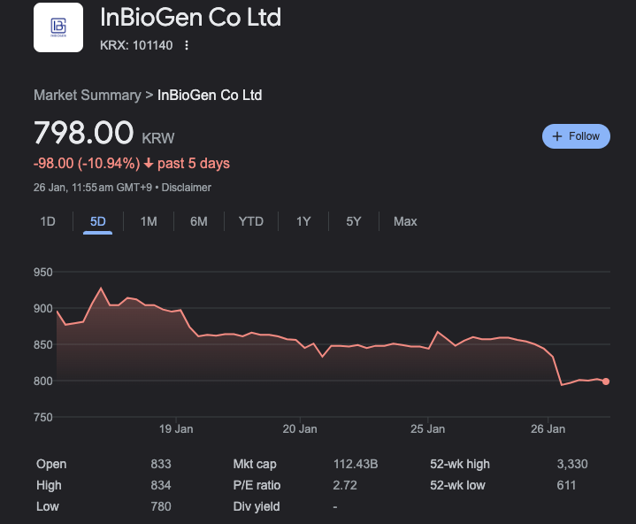 Ji-Yeon had served as the CEO of InBioGen and Bucket Studio - two listed Bithumb affiliates, which are down around 10% each over the past 5 days.