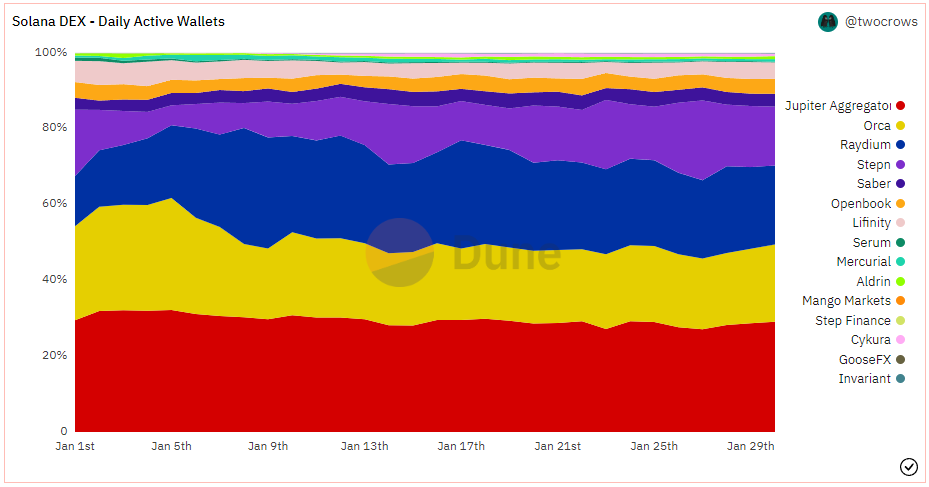The leading Dex aggregator, has processed over US$28 billion in trade volume since Oct 2021, holds 30% of Daily Wallet Activity share and is currently the leading protocol for Daily Active Users on the Solana blockchain.