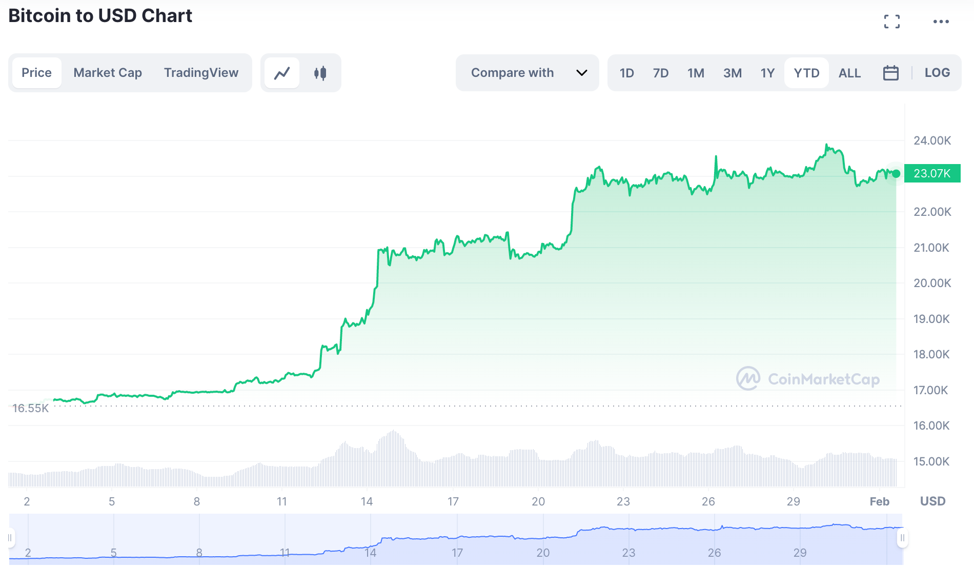 2023 has been a good start for Bitcoin. Despite being down over 40% from its February 2022 price, much of its loss has been regained already with its price jumping 39% YTD.