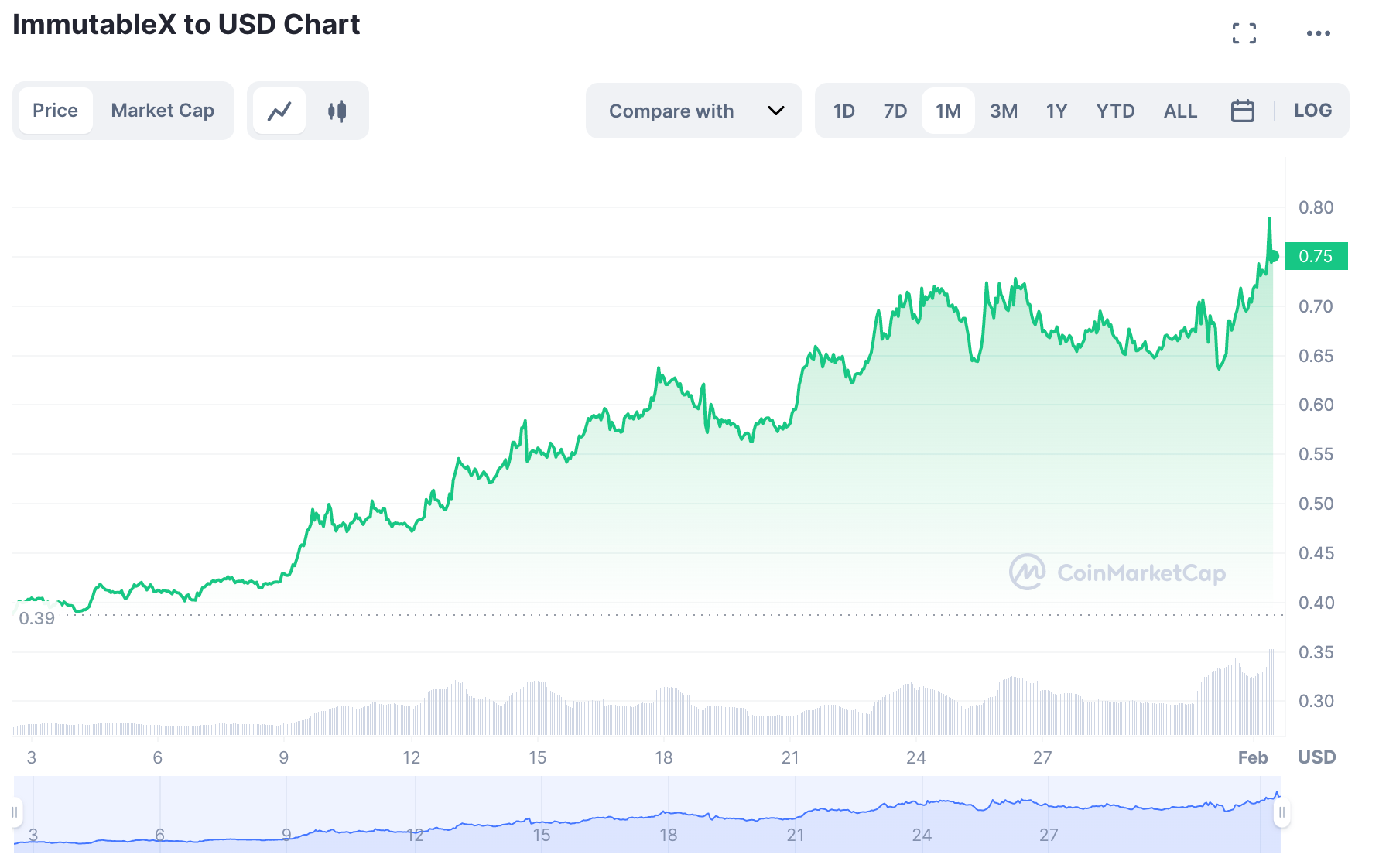 Over the past seven days, ImmutableX's token IMX is up over 15%, briefly touching its ATH of $0.79. Over the month, IMX has increased over 93%. With IMX's new developements, there seems to be no slowdown in its growth for now.