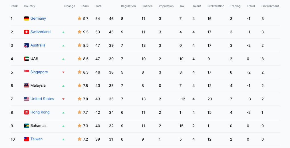 Singapore also slipped from third place to fifth in Coincub’s Q3 Global Crypto Rankings whilst Malaysia ranked just behind Singapore in 6th place – a significant jump from its Q2 position of 43rd.