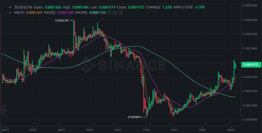 It's not just technical patterns pushing SHIB's price up either. SHIB has gained momentum following its announcement on 16 January 2023 that Shiba Inu backed layer 2 blockchain Shibarium would go live on 14 February 2023.