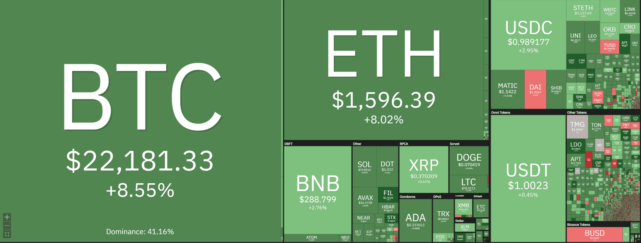 At the time of writing, Ethereum (ETH) is trading at US$1,598.37 (+7.76% in 24 h). Major altcoins such as Cardano (+10%), MATIC (+6.72%), and Solana (+8.32%) have also been trading in green within the same period.