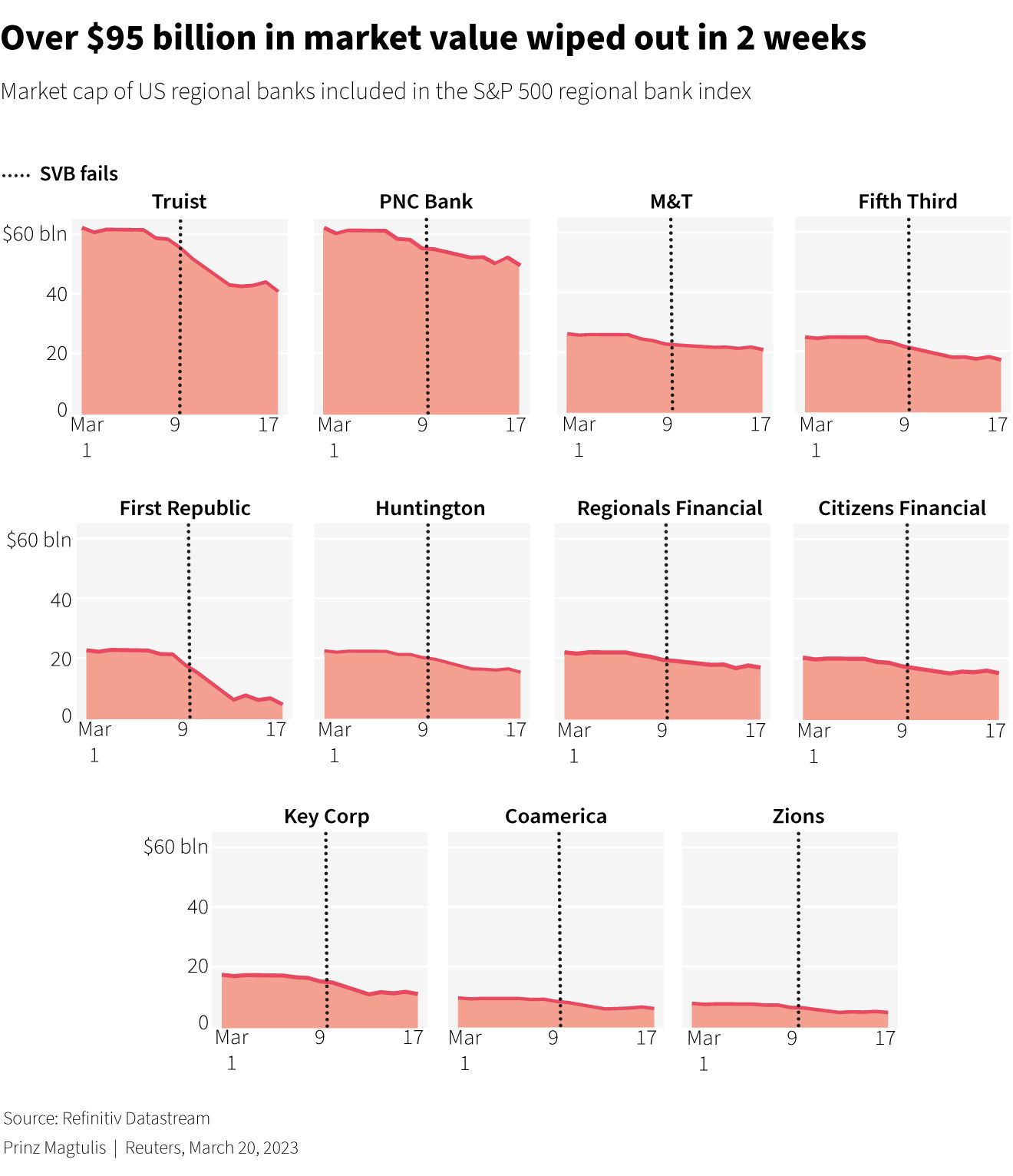 The failure of SVB set off ten days of turmoil in the banking industry, which culminated in the weekend buyout of Credit Suisse by competitor UBS for 3 billion Swiss francs ($3.2 billion).