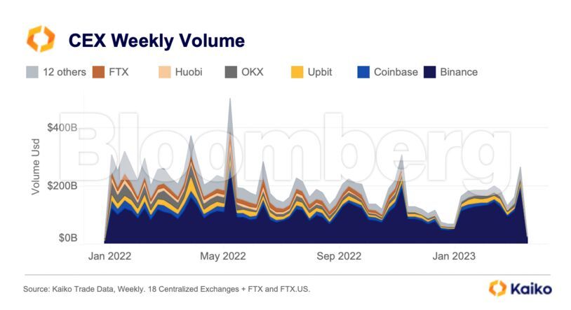 According to Kaiko, a digital asset analytics company, the exchange has accounted for over 70% of all trading volumes throughout the spot market so far this month, compared to just 6% for Coinbase Global Inc.