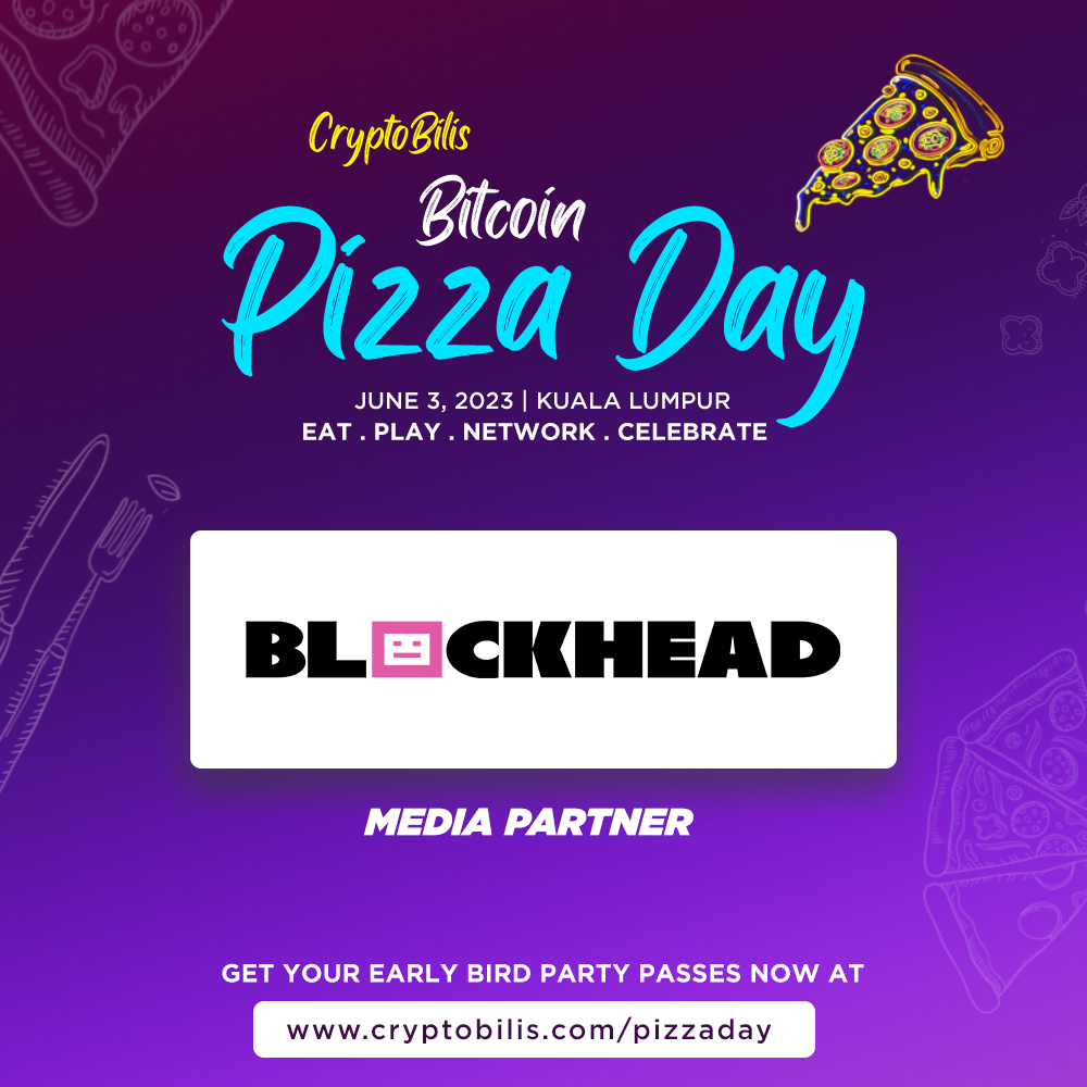 If you haven't already, get your tickets for CryptoBilis' Pizza Day happening on 3 June 2023 in Kuala Lumpur. Be it if you're a crypto maxi, web3 builder or even a degen trader, the largest Bitcoin Pizza Day celebration ever hosted will be a fun one for the community. This year there will be 15+ exhibitors, 50+ Web3 entities and a TON of pizzas! Get your tickets to the event here.