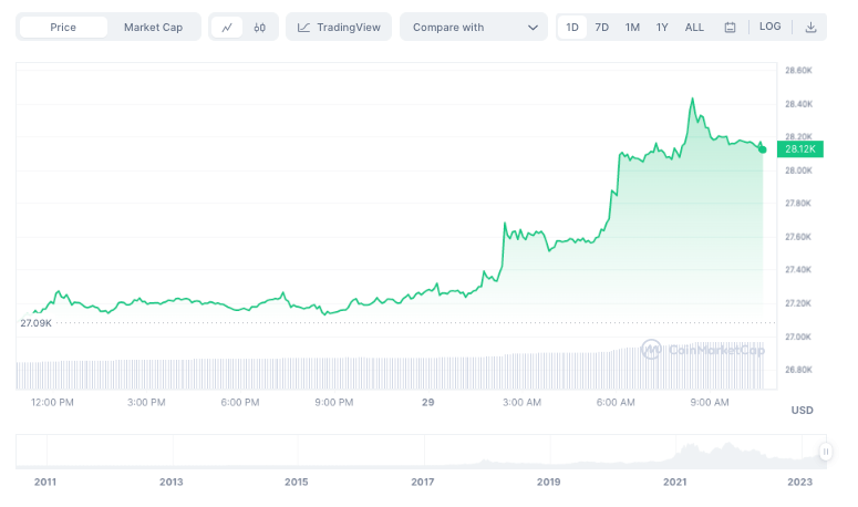 - Bitcoin has reached its highest point in more than two weeks following a deal to raise the US debt limit. On Monday alone, the leading cryptocurrency increased over 3% to highs of $28,411. ETH likewise showed a similar performance, hitting $1,919.