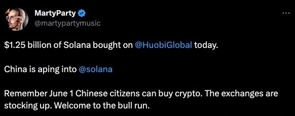 Hong Kong's regulatory stance has been warmly welcomed by the market. According to sources, large Solana transactions have occurred on Huobi in anticipation of Hong Kong's new laws.