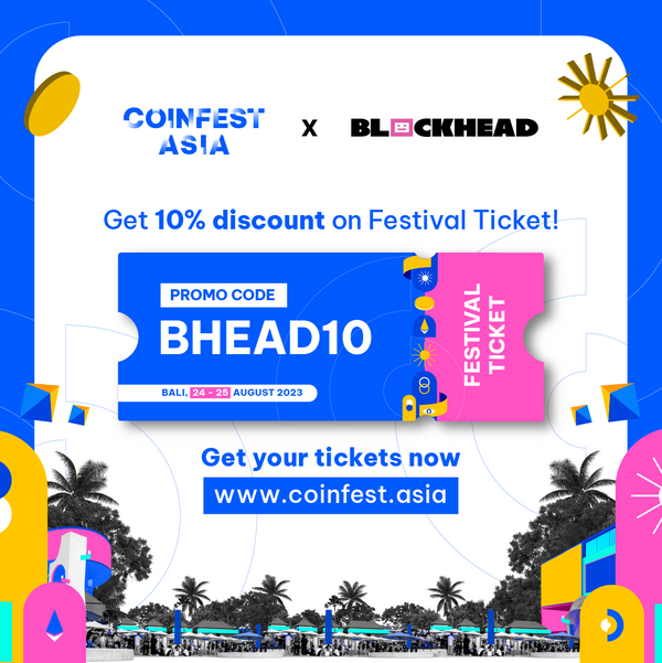 Use our exclusive promocode BHEAD10 to enjoy a 10% discount on festival tickets. Blockhead is an exclusive media partner for Coinfest Asia 2023.