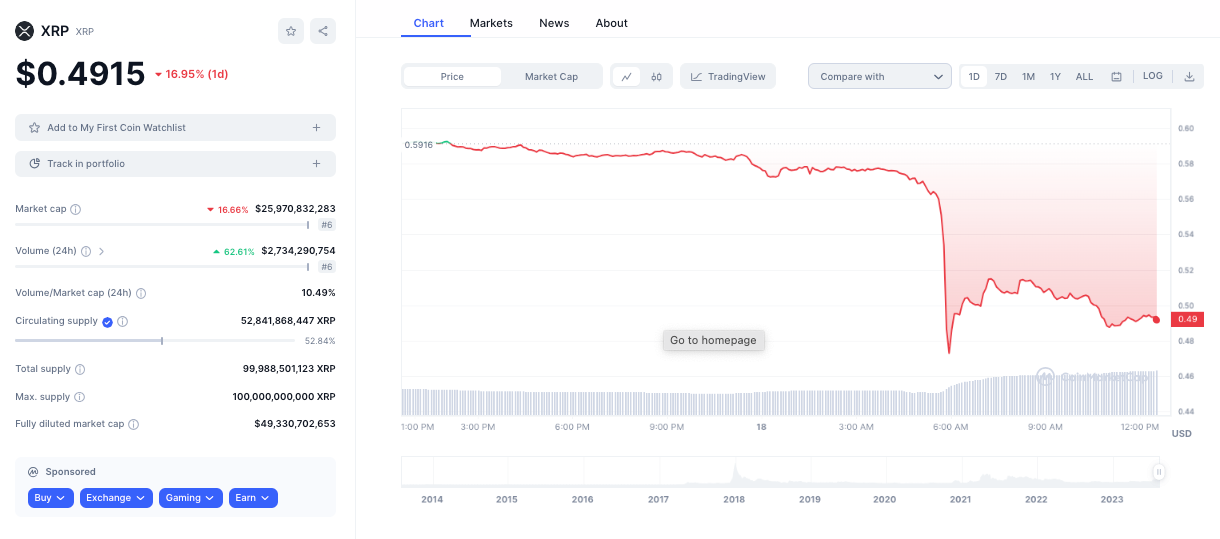 News of the situation sent XRP plummeting 15% within the hour with $23 million worth of XRP long positions being liquidated and 30% over the day.
