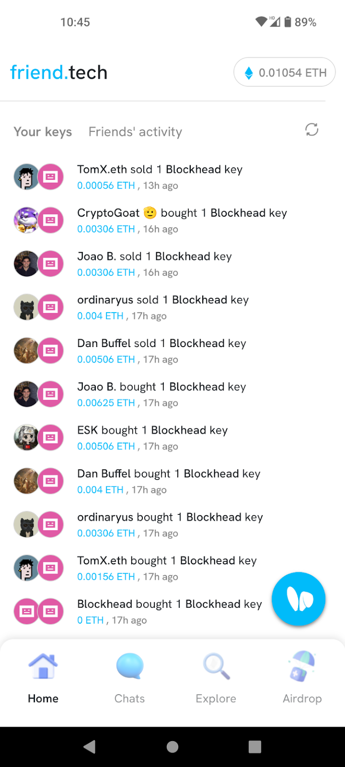 What's more, Blockhead keys are being targeted by what are presumably bots on Friend.tech. Peaking at 0.00625 ETH, Blockhead keys are now worth a measly 0.00056 ETH.