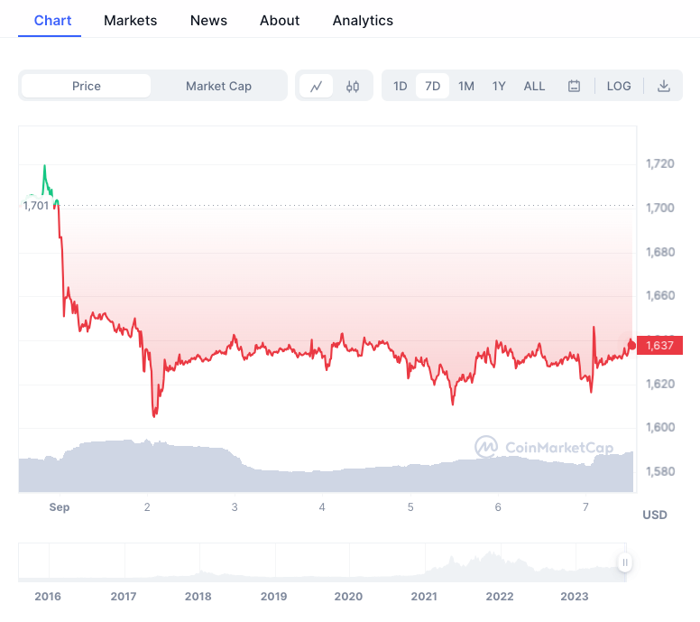 The price of ETH has largely traded sidewise after slipping below $1,700 last week.