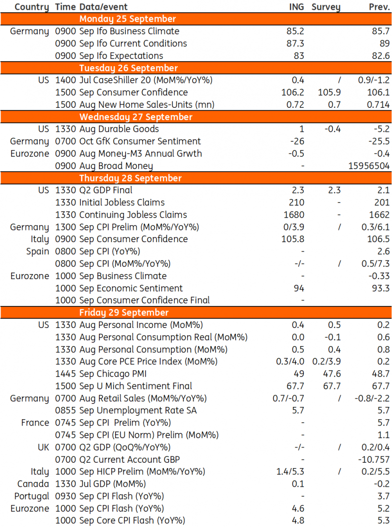The Fed’s higher-for-longer interest rate message upgraded growth forecasts and lowered unemployment projections have gained more market traction, with the 10Y Treasury yield up at 4.5% – the highest since 2007 – and the dollar continuing to strengthen.