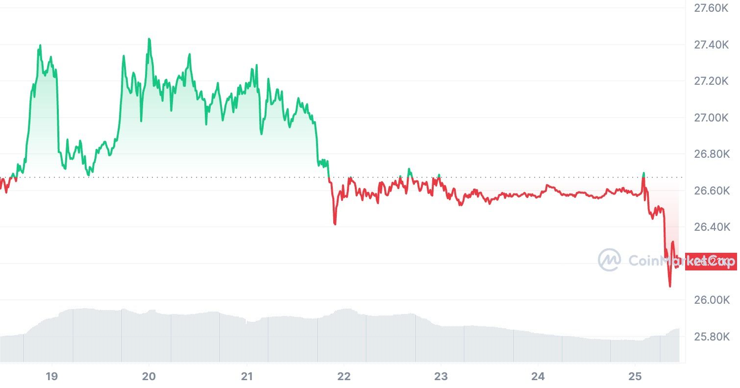 After gains which saw Bitcoin rise over US$27,000 to its highest level since August, the largest cryptocurrency reversed that trend.