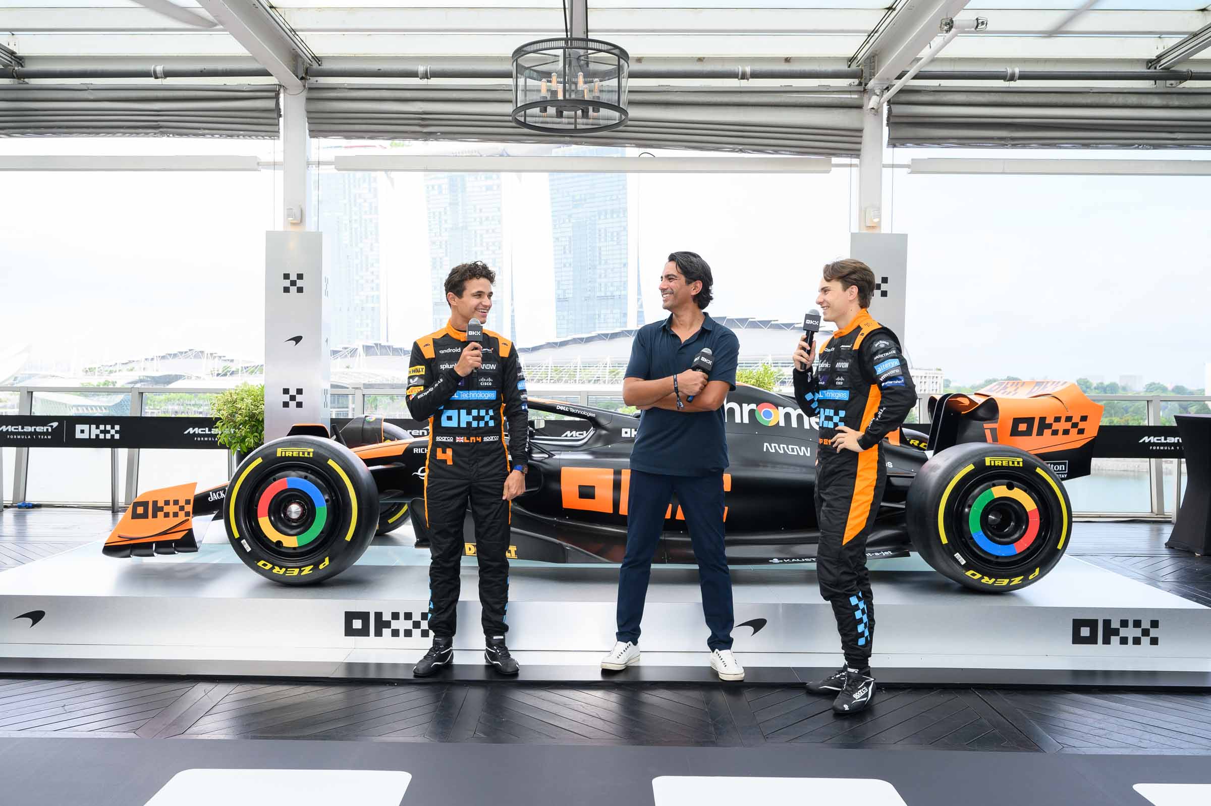 During Token2049, Blockhead experienced an exclusive look at the "Stealth Mode" livery design to be carried on the McLaren MCL60 F1 cars at the Singapore GP. The livery was co-designed by OKX and McLaren, with the former's logo plastered across the race car.