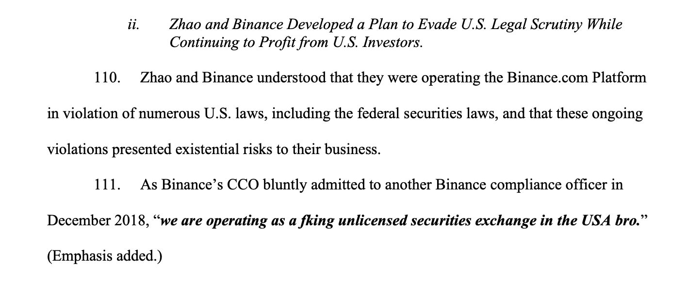 Then there are allegations of Binance's careless frolicking with U.S. investors on its unregulated exchange, despite the alleged "efforts" to rectify any wrongdoings.